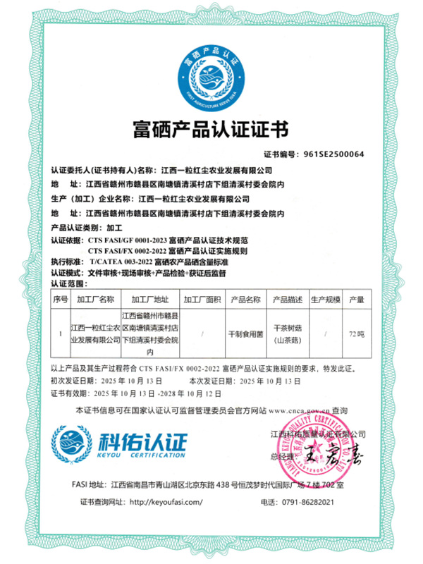 江西一粒紅塵農業發展有限公司是一家總部位于江西省贛縣的現代農業多元型企業,專注于食用菌的研發、種植、深加工、貿易、研教培農文旅等全產業鏈發展。公司秉承“健康、綠色共享、共贏”的核心價值觀,致力于引領鄉村振興之路,旨在成為......
